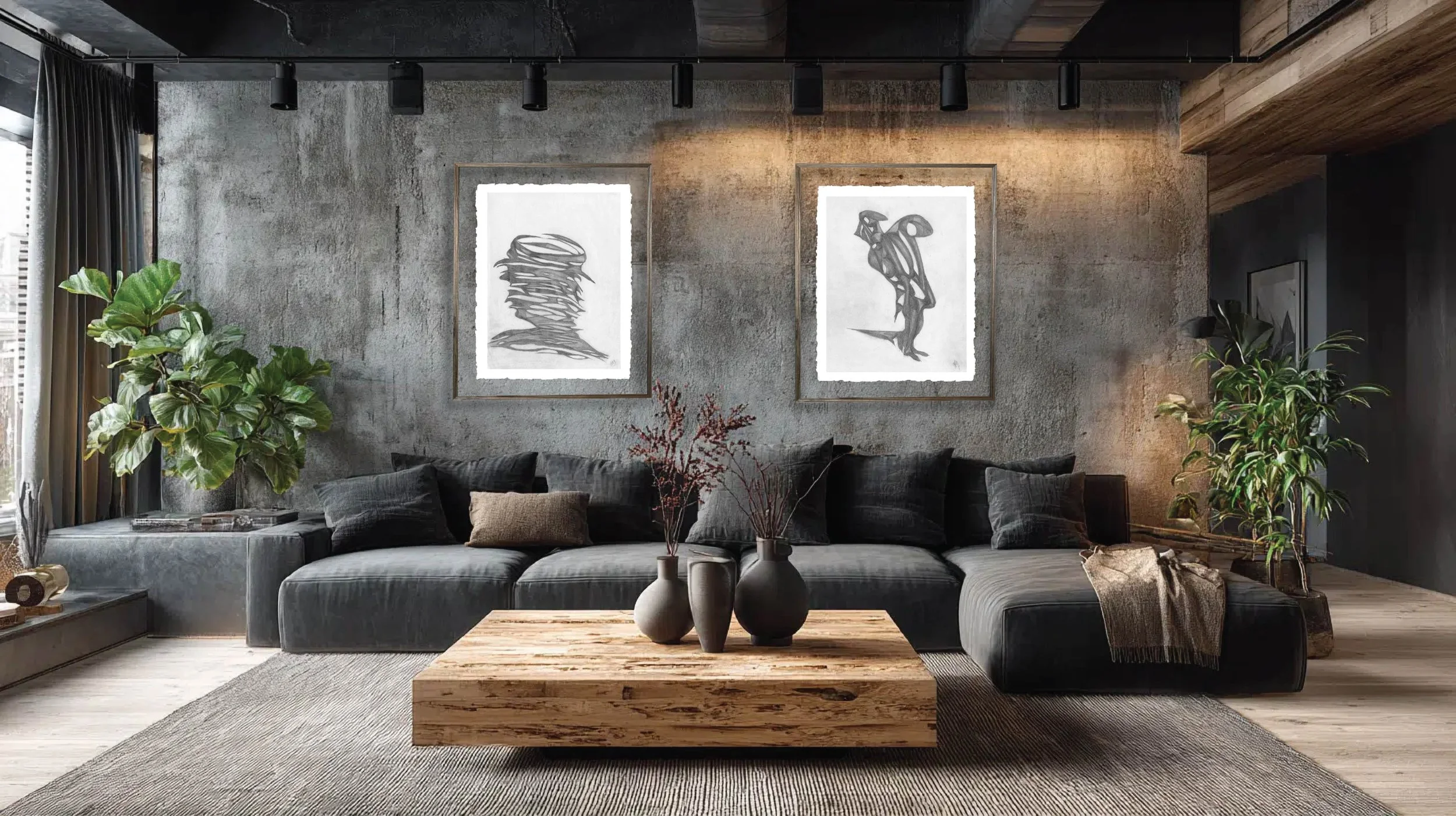 Glaser’s passion for creation is most seen here through the raw spectrum of graphite & charcoal. His whimsical depth of story & reflection of life is exhibited in these creations.